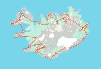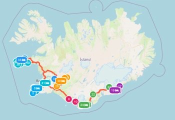 Les temps de parcours ci-dessus sont des estimations de Google Maps avec des conditions de circulation optimales, ce qui arrivent rarement. Dans les conditions réelles, prévoyez au moins 30% de temps en plus car on ne roule pas très vite en Islande à cause du vent, d'un camping car et surtout de la beauté du paysage. L'objectif de cette infographie n'est pas de vous faire croire qu'il est possible de faire le tour de l'île en moins de 17h, mais de vous donner une idée des distances et durées entre deux points.