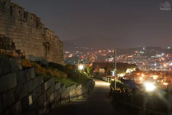 "Naksan park est aussi coupé en 2 par des remparts long de 2km et vieux de 500 ans. Aussi construits pendant la période Joseon, ils protégeaient la ville des invasions et animaux sauvages. S’étendant des portes Hyehwamun (aussi appelé Honghwamun) à Heunginjimun Gate (Dongdaemun Gate), ils font aujourd’hui partie d’un trail et offrent une vue imprenable sur Séoul et le parc Namsan." Source : lavieduriz.com
