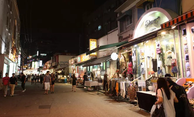 Quartier étudiant de Séoul. Réputé pour ses magasins branchés, bars et boîtes de nuit.